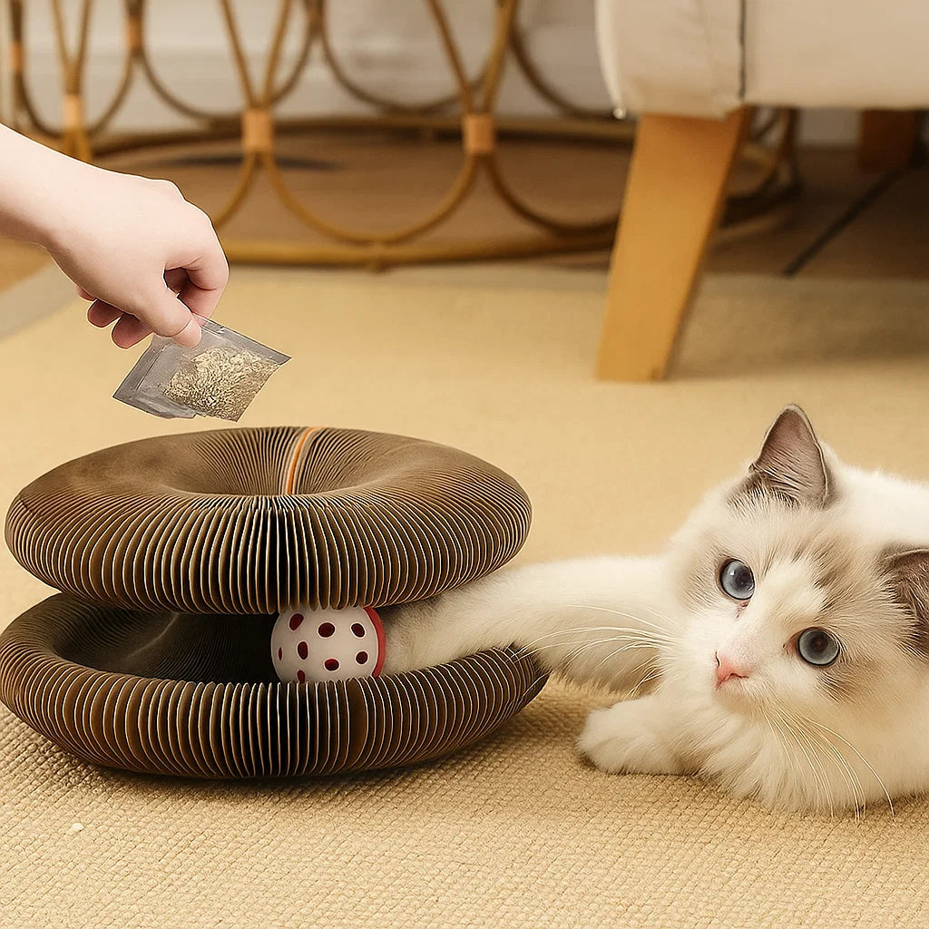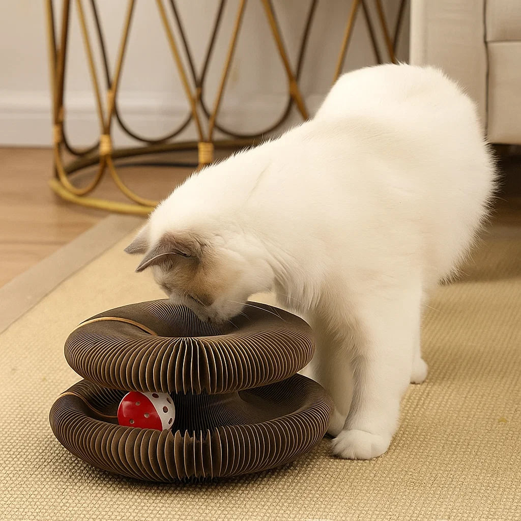 Made from eco-friendly corrugated cardboard and pet-safe adhesives, this toy ensures a secure playtime experience. It’s completely non-toxic, protecting your cat’s health during every scratch and climb. Owners can relax knowing their pets enjoy a safe and natural environment.