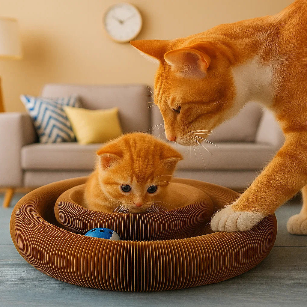 This toy combines a scratching board, climbing frame, and play zone all in one. Cats can scratch to sharpen their claws, climb for exercise, and chase the ball for endless fun. It keeps kittens engaged and prevents boredom.